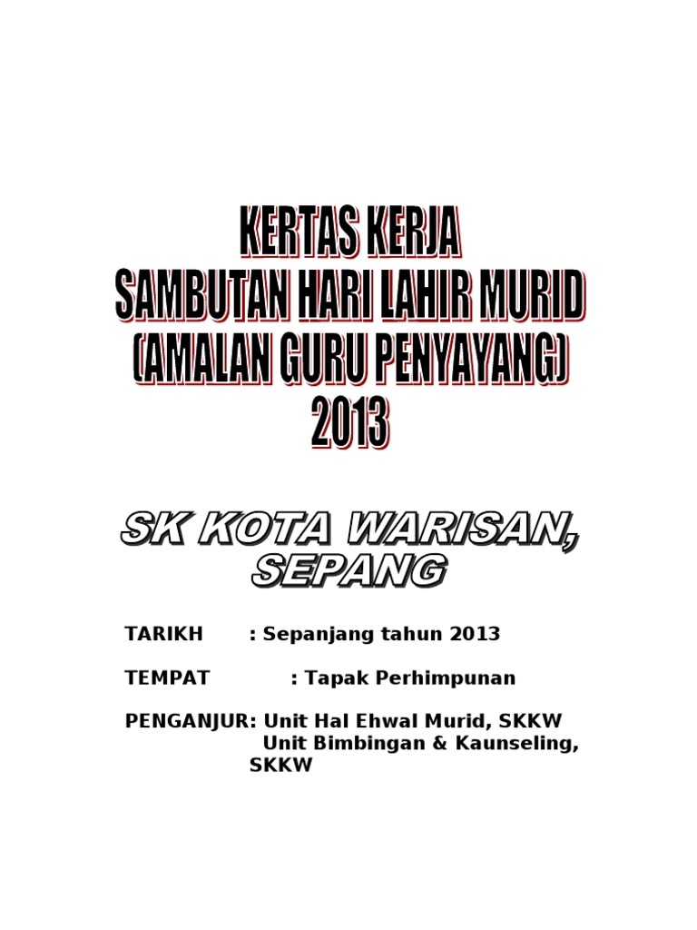 Kertas Kerja Sambutan Hari Lahir Murid Pdf